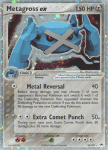 | 3x Dunsparce 2x Metagross ex 2x Metagross 1x Metagross 3x Metang 4x Beldum 2x Pidgeot 1x Pidgeotto 2x Pidgey 1x Bellossom 1x Oddish 1x Jirachi | 4x Steven’s Advice 4x Celio’s Network 3x TV Reporter 2x Rocket’s Admin 4x Rare Candy 1x ATM Rock 1x Switch 1x Warp Point 1x Strength Charm 1x Magnetic Storm 1x Island Cave | 7x Psychic Energy 4x Metal Energy 2x Scramble Energy 1x Rainbow Energy |