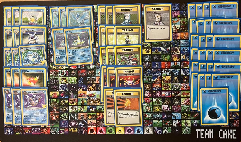 | 3x Blastoise 3x Wartortle 3x Squirtle 3x Dark Gyarados 3x Magikarp 3x Articuno 2x Lapras | 3x Computer Search 3x Pokémon Trader 3x Computer Error 3x Super Energy Removal 2x Super Potion 1x Professor Oak | 25x Water Energy |
