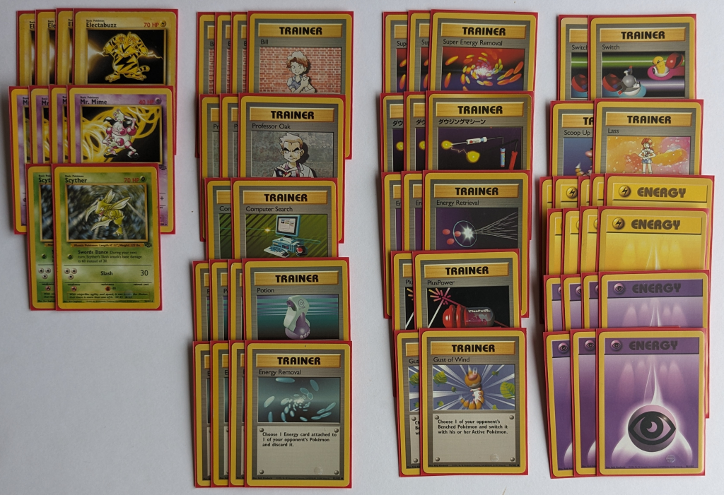 | 4x Electabuzz 4x Mr. Mime 2x Scyther | 4x Bill 3x Professor Oak 2x Computer Search 4x Potion 4x Energy Removal 3x Super Energy Removal 3x Item Finder 3x Energy Retrieval 2x Pluspower 2x Gust of Wind 2x Switch 1x Scoop Up 1x Lass | 9x Lightning Energy 7x Psychic Energy |